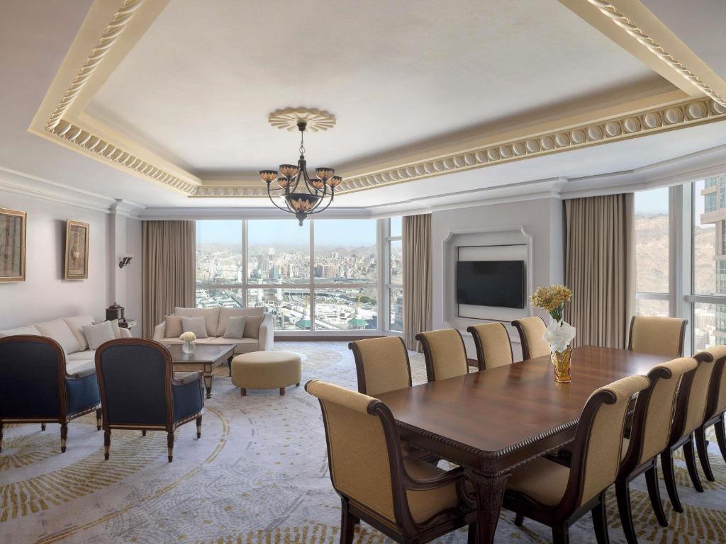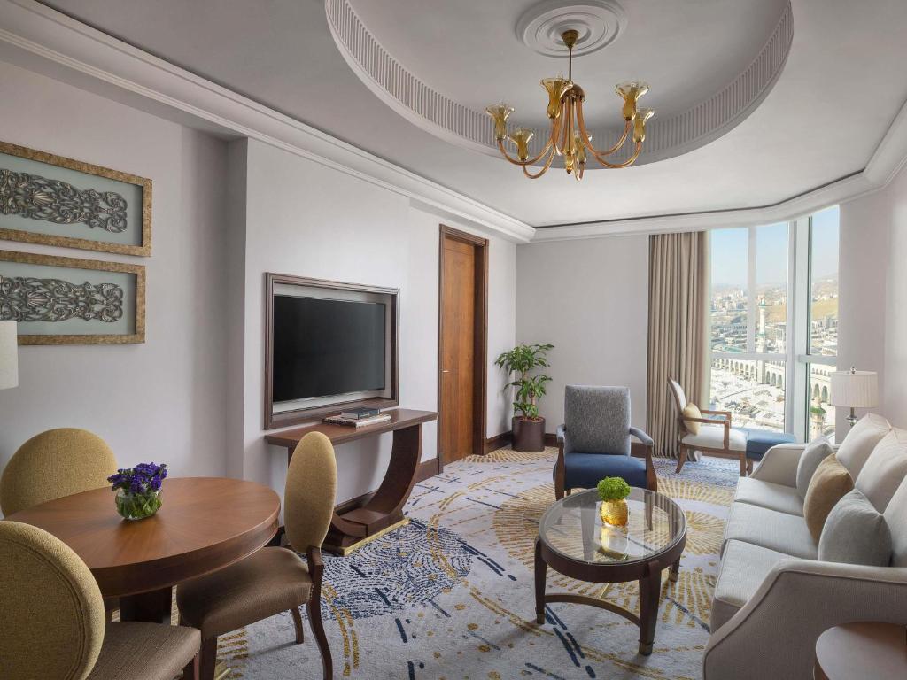 Raffles Makkah Palace, sadece süit konseptiyle hizmet veren prestijli bir oteldir. Geniş ve Kâbe manzaralı odaları, 24 saat butler hizmeti ve özel giriş avantajı ile üst düzey bir konaklama sunar. Spa, restoran ve kişiye özel hizmetleri ile öne çıkar.